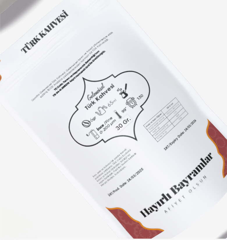 Markanıza özel, benzersiz bir dokunuş! 30 gramlık taze çekilmiş kahvemiz, kaliteli lezzeti ve etkileyici ambalajıyla dikkat çeker. İster müşterilerinize unutulmaz bir hediye sunun, ister etkinliklerinizde fark yaratın; özel tasarım kahve ürünümüz, markanızın her yudumda hatırlanmasını sağlar.